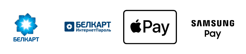 Безопасность совершения платежа обеспечивается современными методами проверки, шифрования и передачи данных по закрытым каналам связи. Ввод данных карточки осуществляется на защищенной авторизационной странице банка. Для оплаты необходимо ввести реквизиты карточки: номер, имя держателя, срок действия и трехзначный код безопасности. Трёхзначный код безопасности (CVV2 для VISA, CVC2 для MasterCard) — это три цифры, находящиеся на обратной стороне карточки. Если карточка поддерживает технологию 3DSecure или Интернет-пароль для держателей карточек БЕЛКАРТ, Вы будете перенаправлены на страницу банка, выпустившего карточку, для ввода кода безопасности. При оплате с помощью Apple Pay выберете карту из приложения Wallet, воспользуйтесь кодпаролем или иным способом аутентификации, в зависимости от того, какой способ выбран в приложении. При оформлении заказа с помощью Samsung Pay нажмите «Оплатить Samsung Pay», введите ваш Samsung Account и подтвердите покупку на вашем смартфоне (по отпечатку пальца, радужке или PIN-коду Samsung Pay).